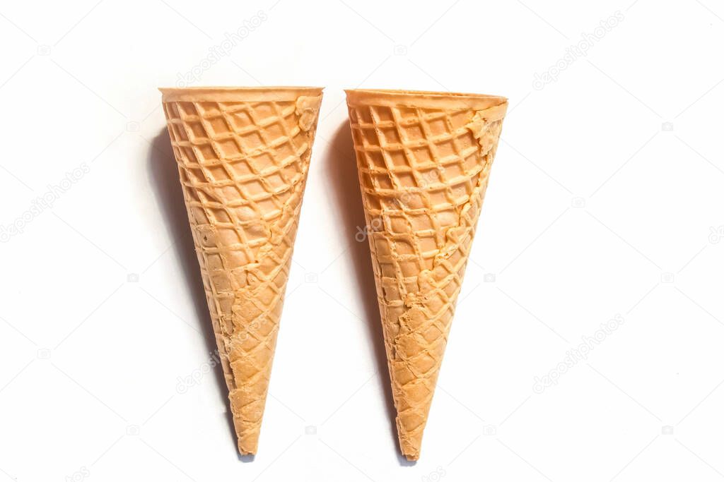 WHITE BACKGROUND OBJECT ISOLATED SHAPE EMPTY SUMMER FRESH TEXTURE BROWN FOOD INGREDIENT PATTERN PASTRY CREAM TASTY DELICIOUS SWEET BAKED DESSERT SNACK WHOLE CLASSIC CONCEPT PRODUCT REFRESHMENT CONE UNHEALTHY SPIRAL ICE CRUST SUGAR BISCUIT TREAT CALORIE FLAVOR INDULGENCE WAFFLE CRUNCHY CRISPY WAFER CORNET WHITE BACKGROUND ICE CREAM