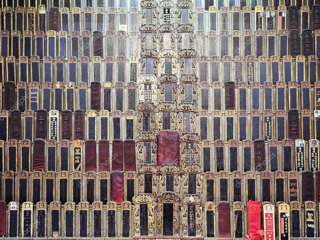 Chachoengsao, Thailand - March 28, 2025: Chinese spirit tablets at Luang Pho Sothon shrine where is a famous landmark of Chachoengsao province.