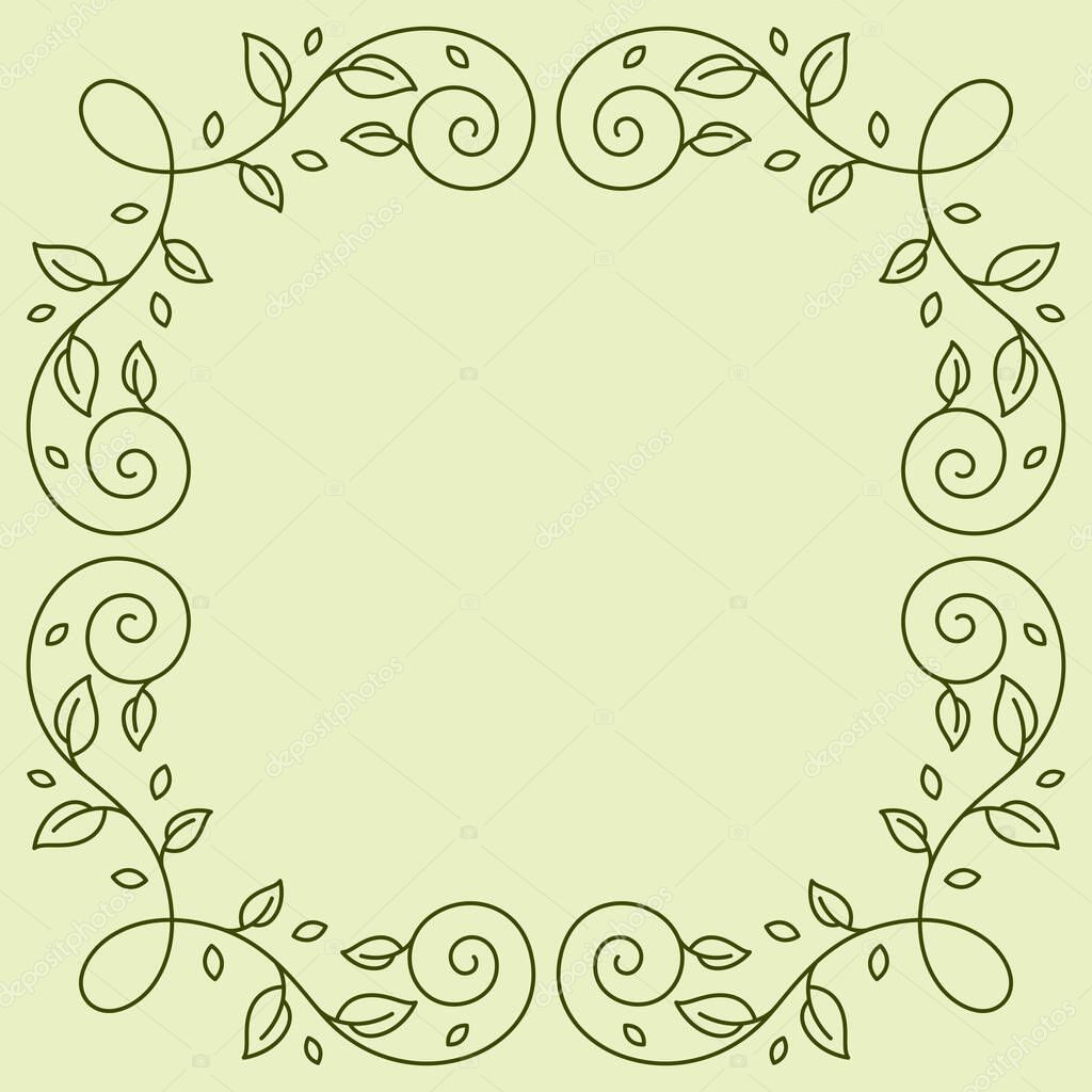 - Floral curling frame. Decorative nature swirling background with leaves. Classic design for decoration.