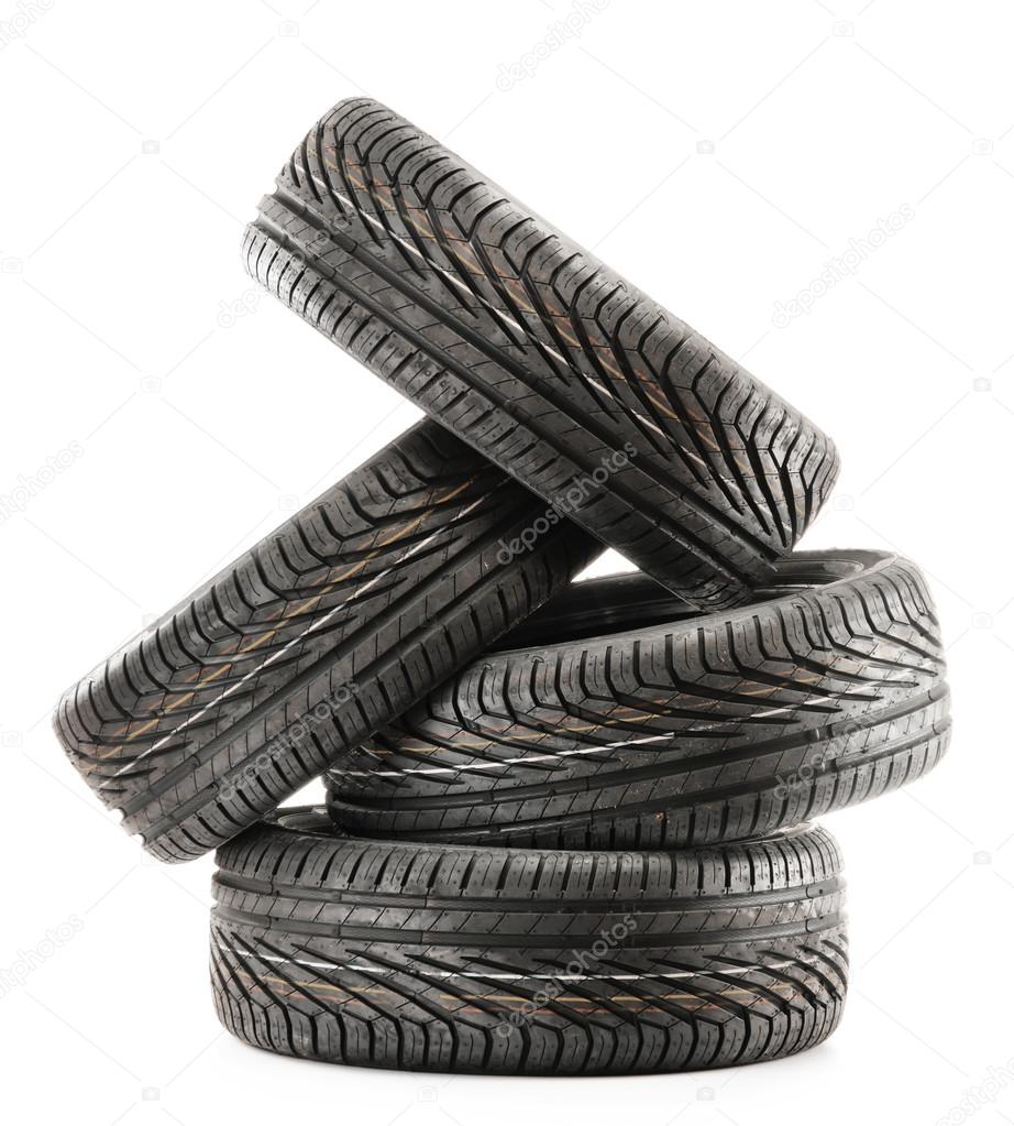 - Four new black tires isolated on white