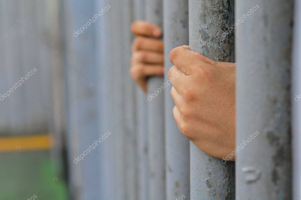 - prisoner's hands behind bars with black background
