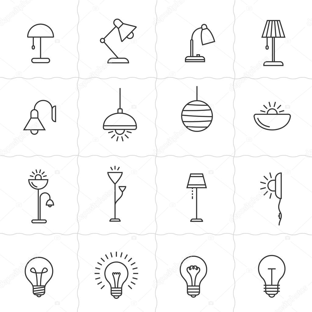 Light fixture linear icon set. Lamps and lighting devices. Simple outlined icons. Linear style