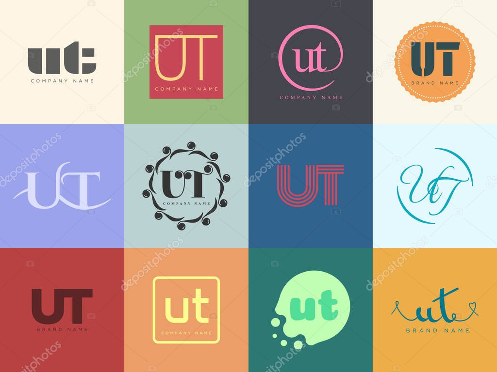 - UT logo company template. Letter u and t logotype. Set different classic serif lettering and modern bold text with design elements. Initial font typography. Collection trendy business identity.