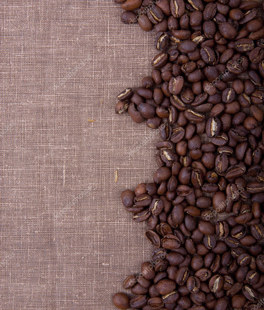 Photo of grains of coffee on a sacking