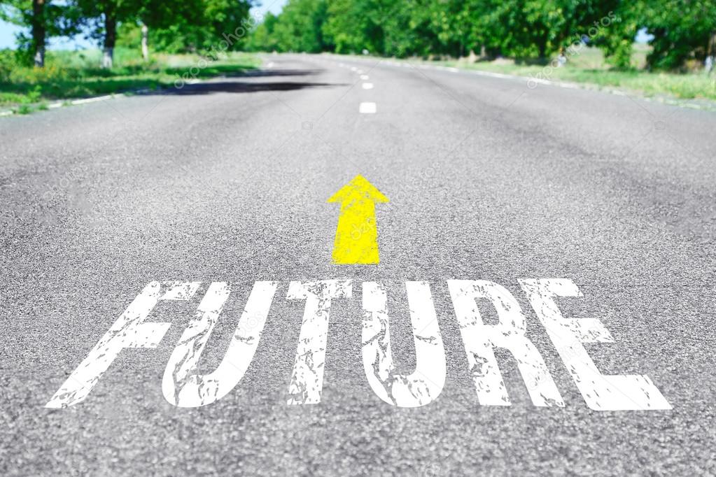Future concept. Word Future with arrow marking on road surface