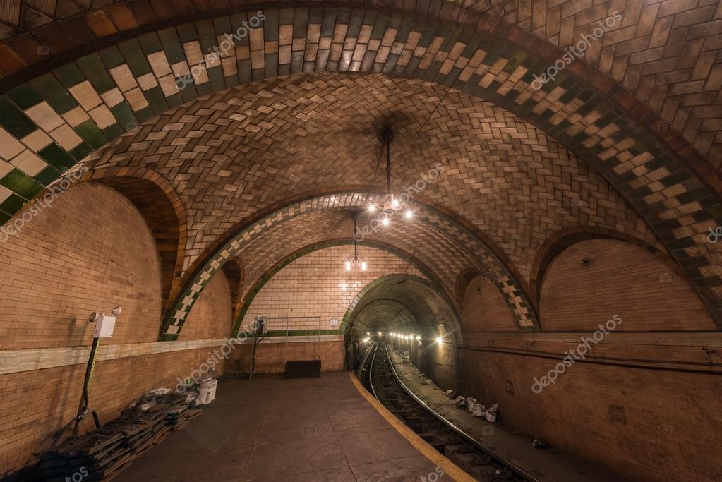 New York, USA - January 30, 2016: City Hall Subway Station in Manhattan. Landmark station built in 1904 to inaugurate the NYC Subway system.