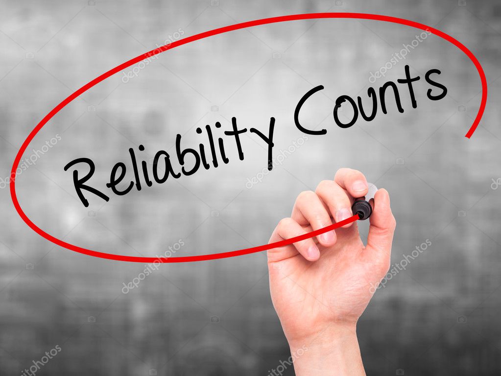 Man Hand writing Reliability Counts with black marker on visual
