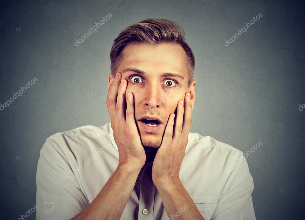- шокированный молодой человек с открытым ртом