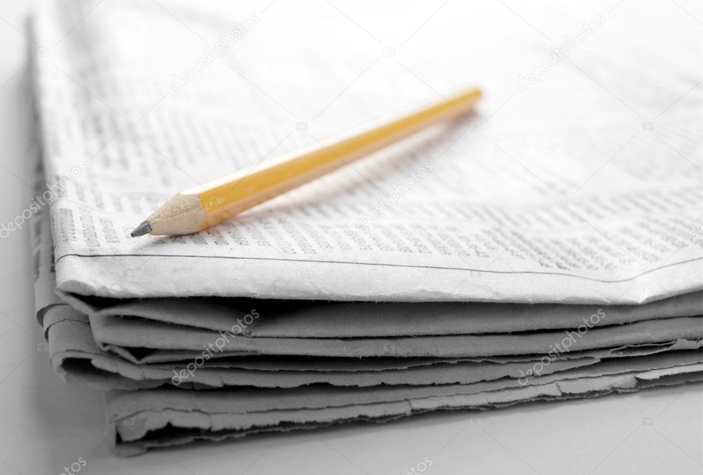 Газета с новостями крупным планом на белом фоне