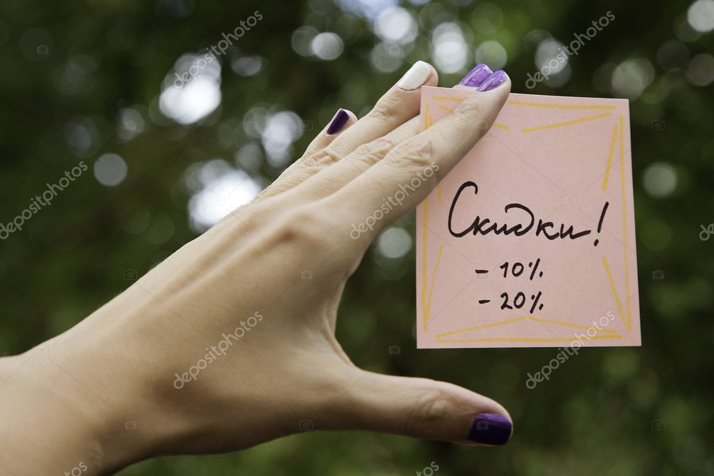 Скидка 10%, 20%, скидка, скидка, скидка, пособие, вычет, скидка в руке, продажа, закрытие, клиренс-продажа, рука девушки с продажей листа, другая продажа, надпись на листе продажи%, надпись на листе акции