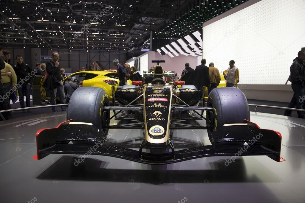 ЖЕНЕВА, ШВЕЙЦАРИЯ - 4 марта 2011 - 2011 Lotus Renault GP Формула-1 Car на ежегодной автовыставке в Женеве 4 марта 2011