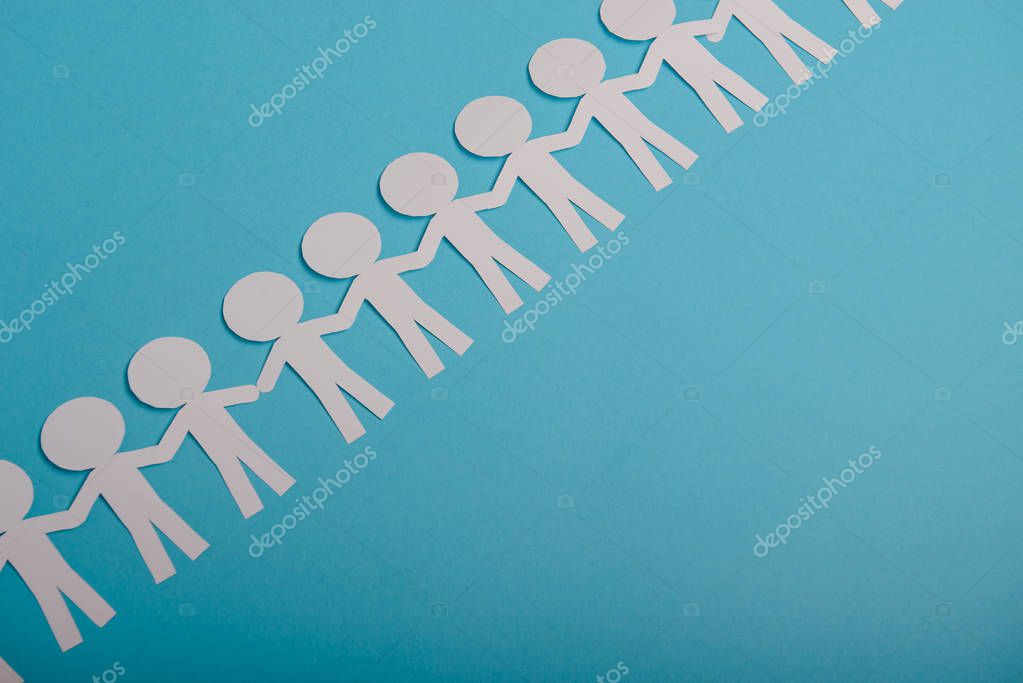 Абстрактные бумажные люди, держащиеся за руки на синем фоне