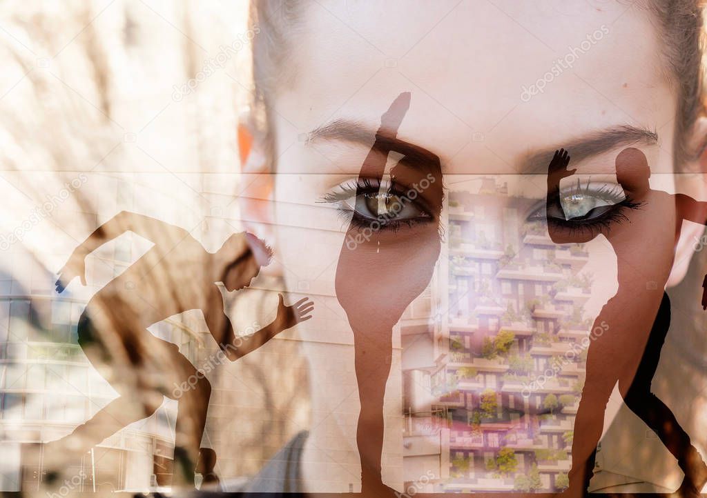 Двойное обнажение девушки с великолепными глазами и уличными танцорами