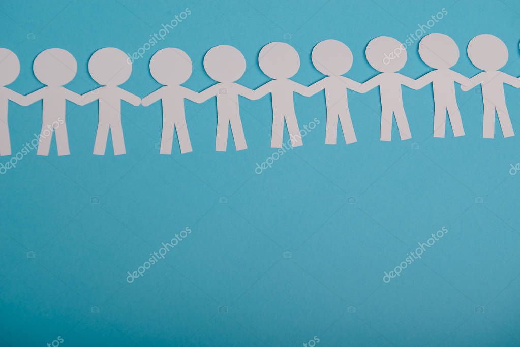 Абстрактные бумажные люди, держащиеся за руки на синем фоне