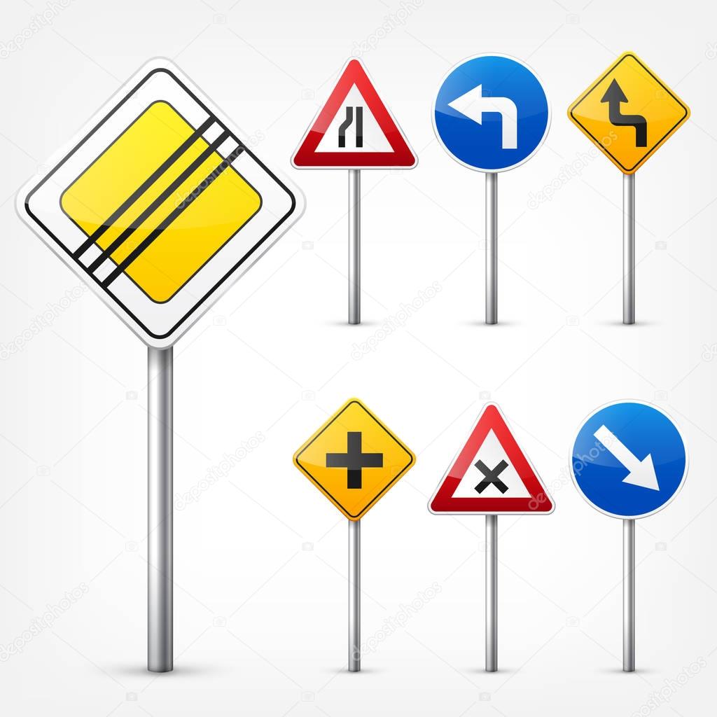 - Коллекция дорожных знаков изолирована на белом фоне. Дорожное движение регулируется полосой движения, остановка и уступка. Регуляторные знаки .