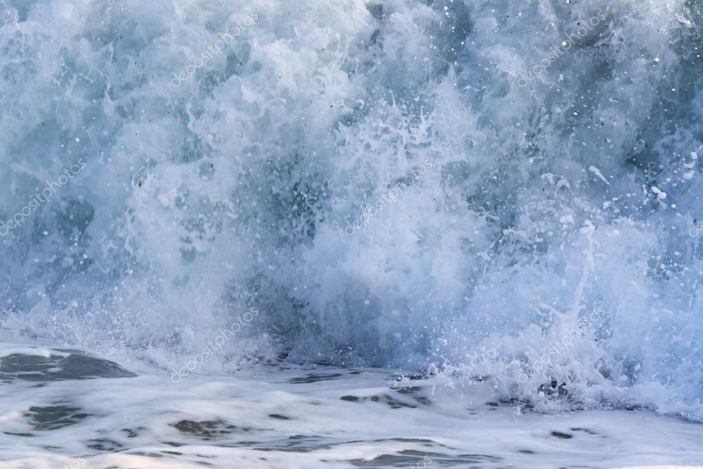Синий всплеск Средиземного моря Есть пена и много всплесков