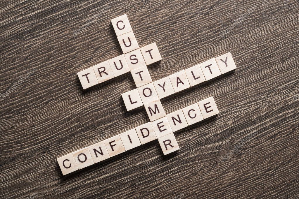 Слова бизнес-концепций, собранных в кроссворд с деревянными кубиками