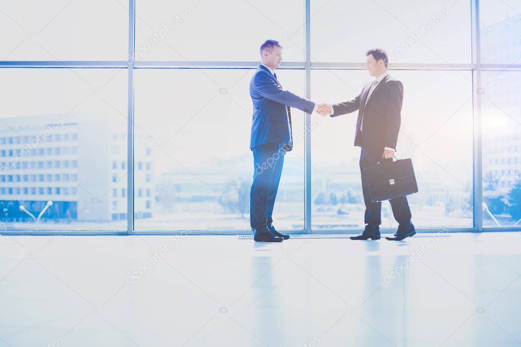 - Изображение двух успешных бизнесменов, пожимающих друг другу руки