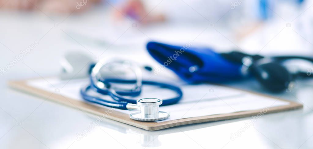 Стетоскоп крупным планом с буфетом на столе