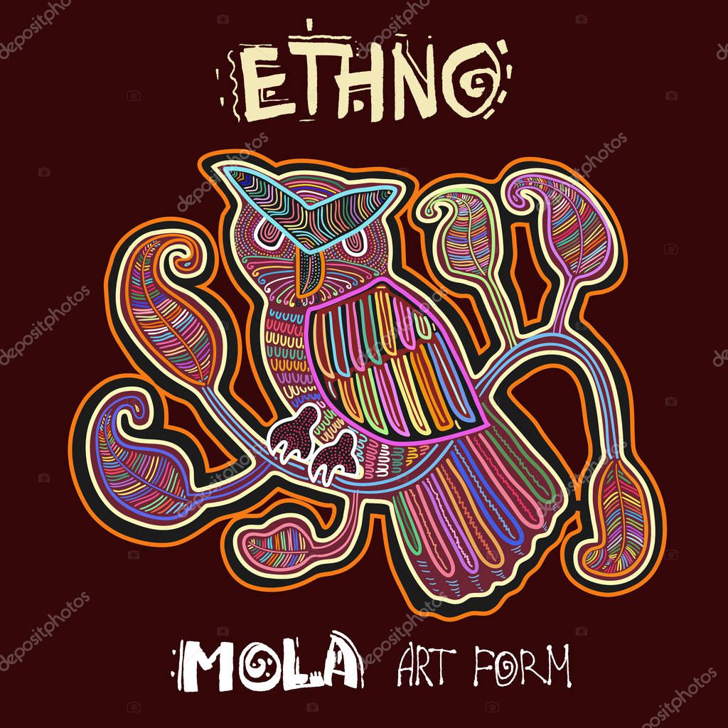 - Элемент векторного этнического дизайна. ЭТНО. Форма искусства MOLA. Птица в стиле Мола. Этно-яркая декоративная иллюстрация