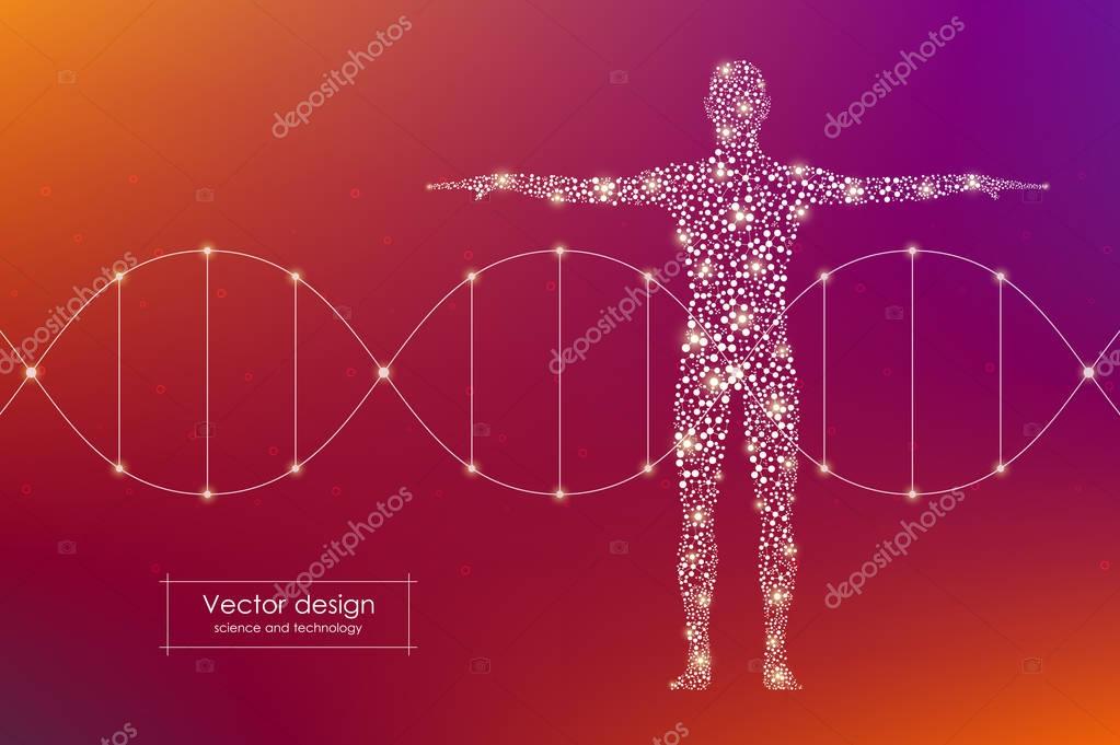 Абстрактное человеческое тело с молекулами ДНК. Медицина, наука и технология. Векторная иллюстрация