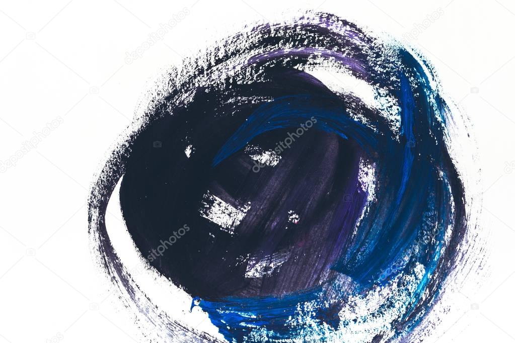 абстрактная живопись темно-синими и фиолетовыми мазками кисти на белом