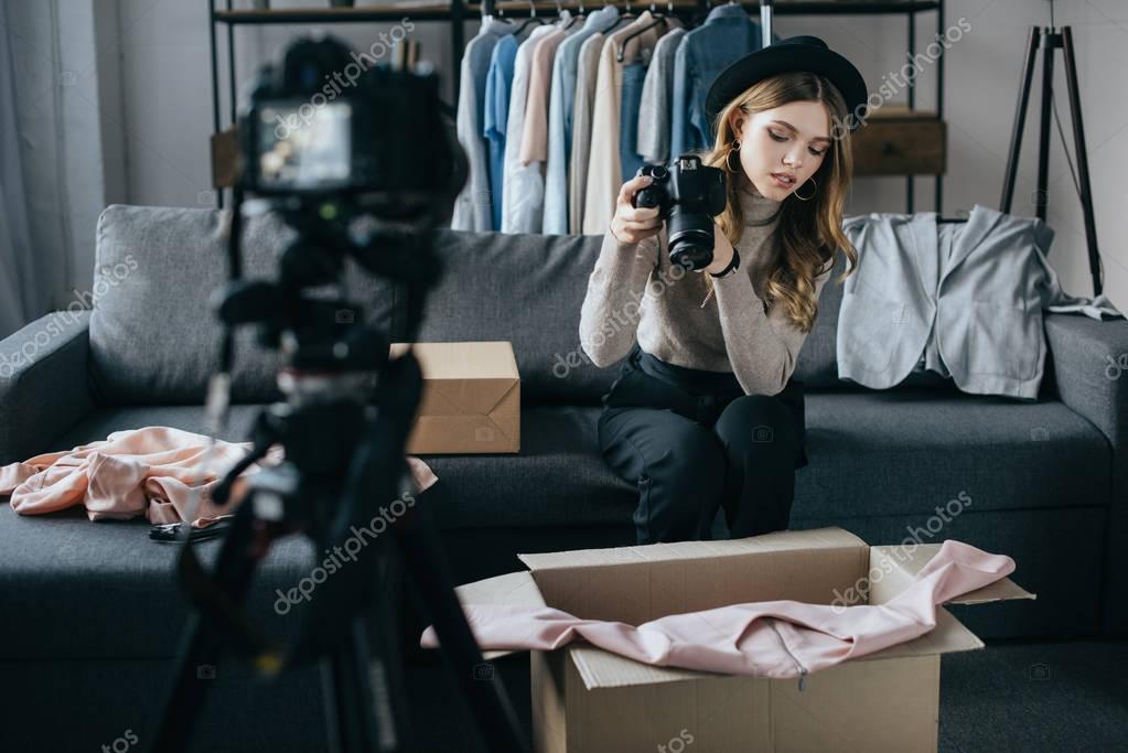 - молодой блогер моды запись видео о платье для нового видеоблога