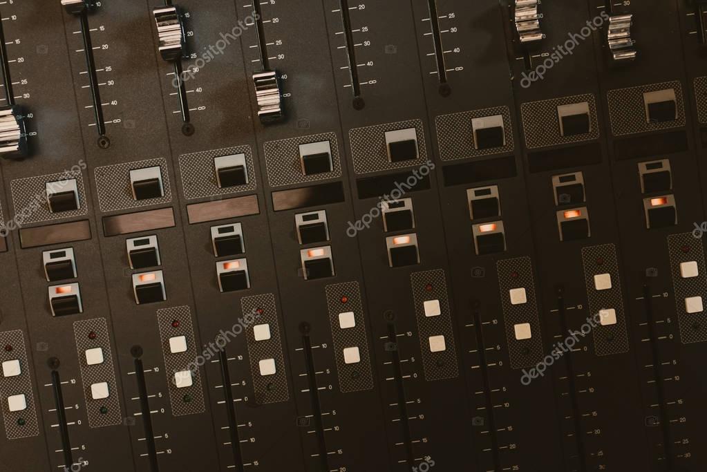 - вид аналогового графического эквалайзера на студии звукозаписи