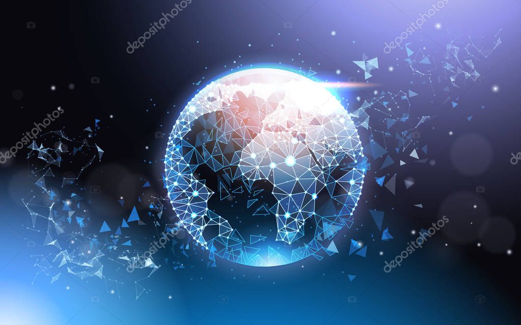 - Футуристическая глобальная сеть Земли Низкая полисетка Wireframe на голубом фоне Концепция глобальной сети
