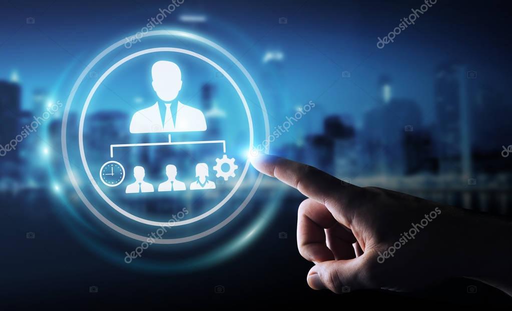 Бизнесмен, использующий график бизнес-лидерства 3D рендеринг