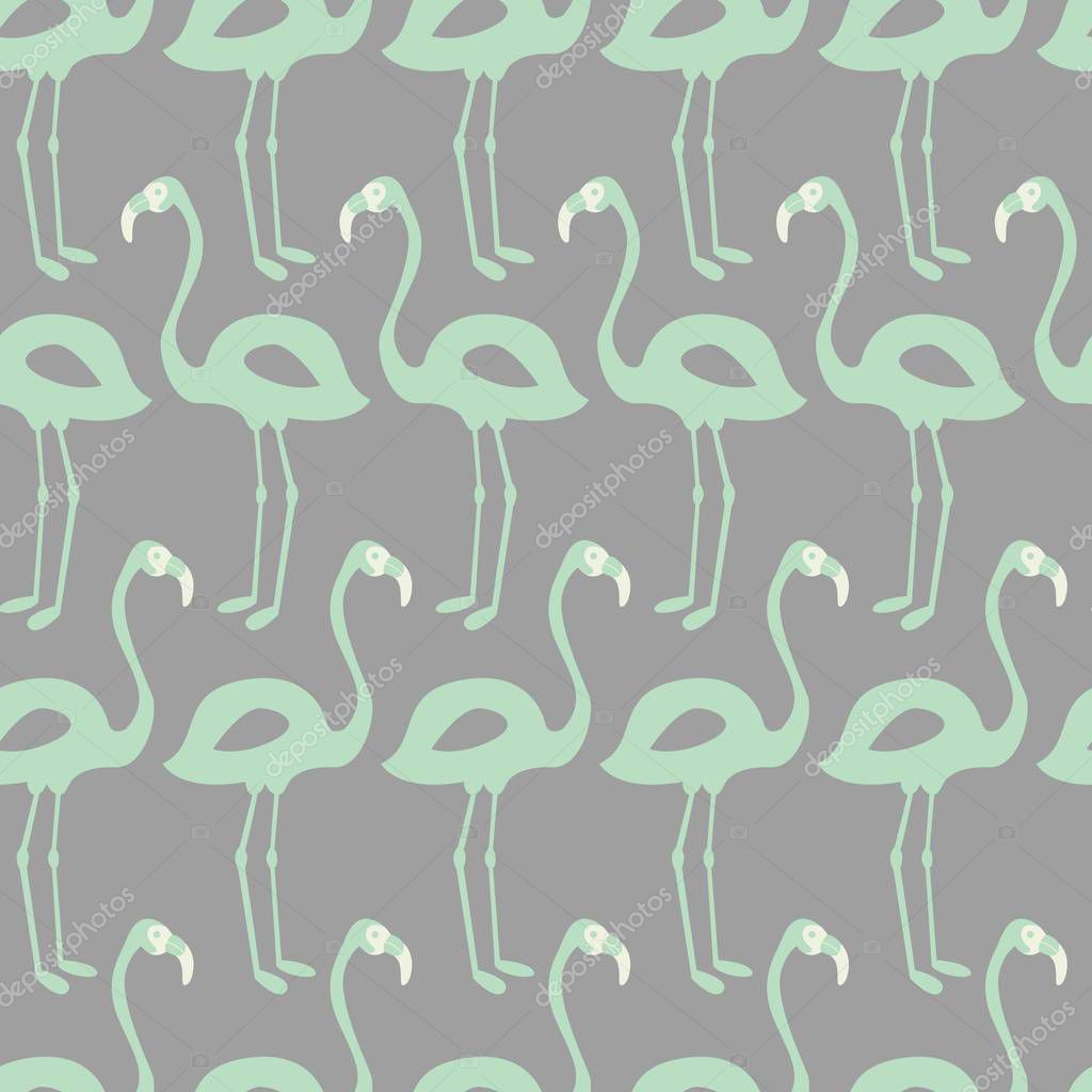 Фламинго бесшовный рисунок на фоне мяты, векторная иллюстрация
