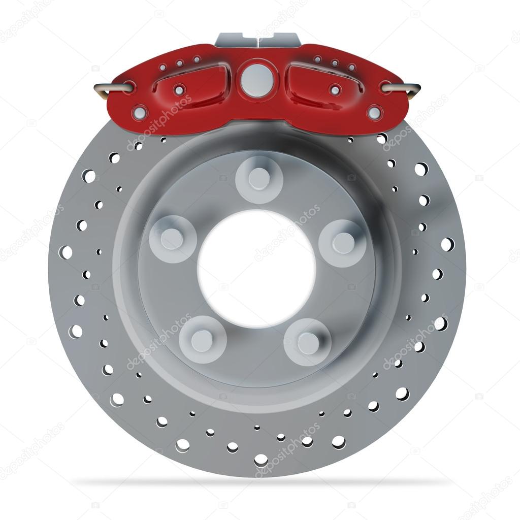 тормозной диск с красной поддержкой. изолированные на белом фоне