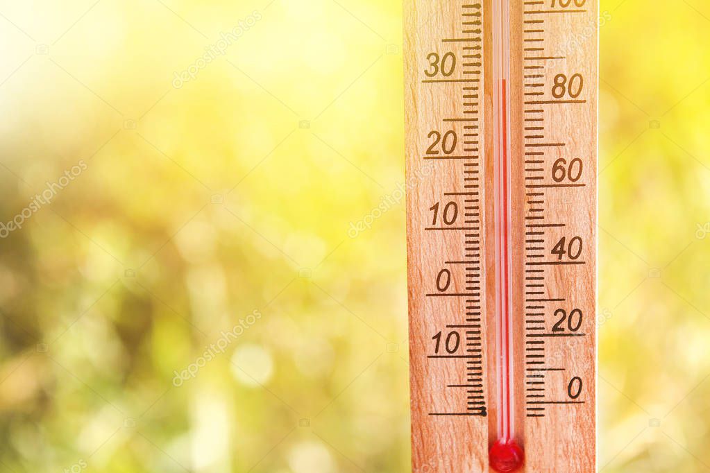 - Термометр с высокой температурой 30 градусов в солнечный летний день