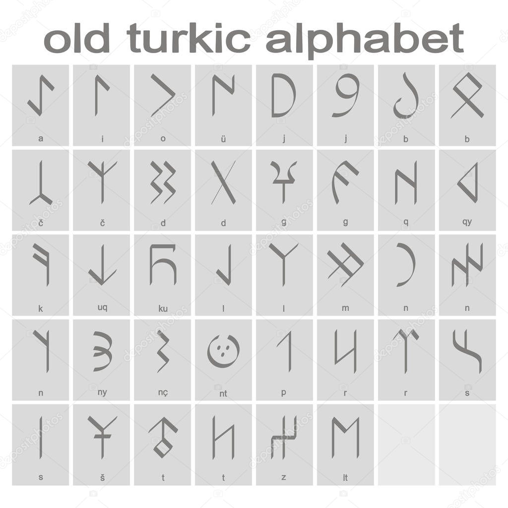 Набор монохромных икон с древнетюркским алфавитом для Вашего дизайна