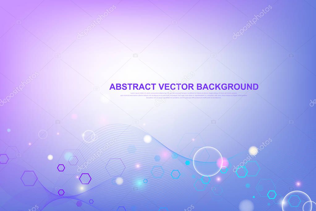 - Абстрактный шестиугольный фон с волнами. Шестиугольные молекулярные структуры. Футуристические технологии в научном стиле. Графический шестигранный фон для вашего дизайна. Векторная иллюстрация