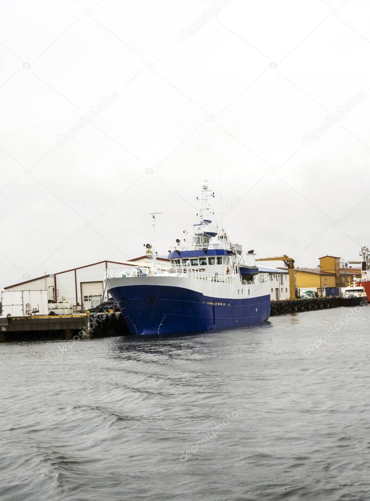 Порт Бодо в облачный день. Бод - муниципалитет и город Норвегии, столица провинции Фландрия и второй по численности населения город региона Северный Рейн-Вестфалия, в котором в 2015 году проживало 50 тысяч человек. .