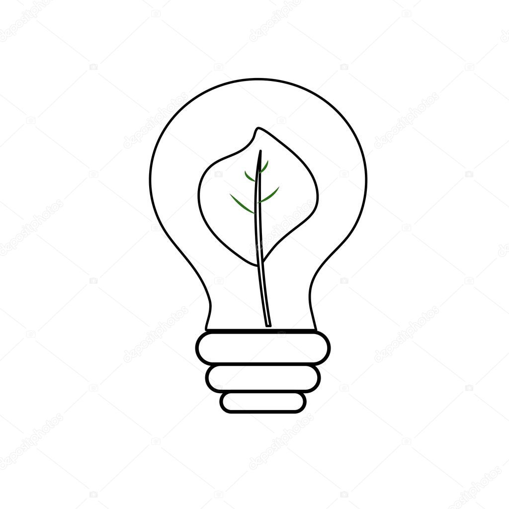 - Энергетическая лампа линии с листьями внутри к окружающей среде уход векторной иллюстрации