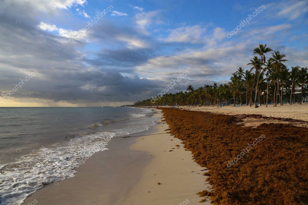 Морской водоросли застрял на пляжах Пунта-Кана