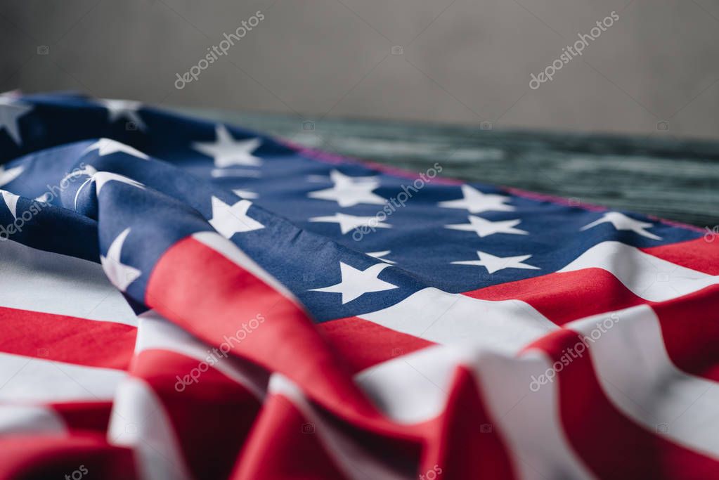 - сложенный американский флаг на сером фоне, концепция Дня памяти