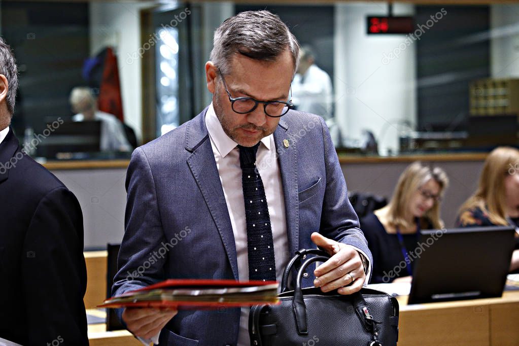 Брюссель, Бельгия 19 марта 2019 года. Министр иностранных дел Германии Майкл Рот принял участие в заседании Совета по общим делам в Европейском совете