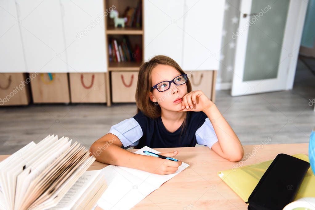 - Школьница, выполняющая домашнюю работу