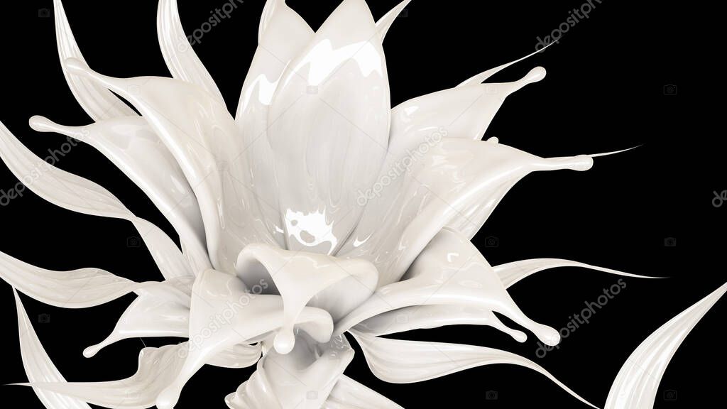 Всплеск густой белой жидкости на черном фоне. 3D иллюстрация, 3D рендеринг .
