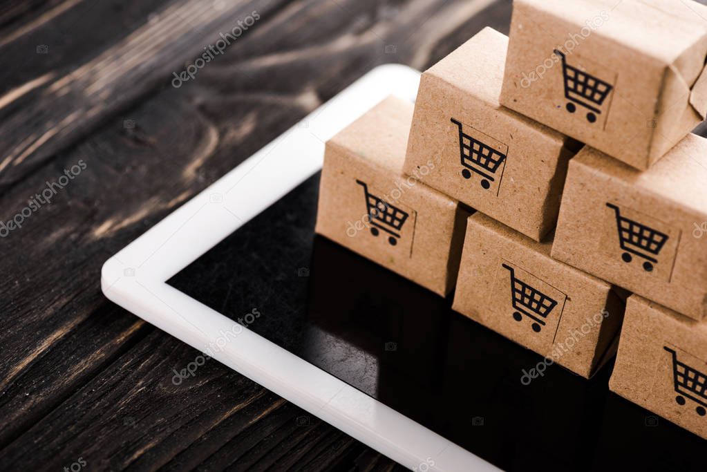 - селективное фокусирование небольших коробок на цифровых планшетах, концепция электронной коммерции