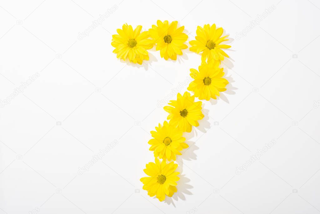 верхний вид желтых маргаритки расположены в номере 7 на белом фоне