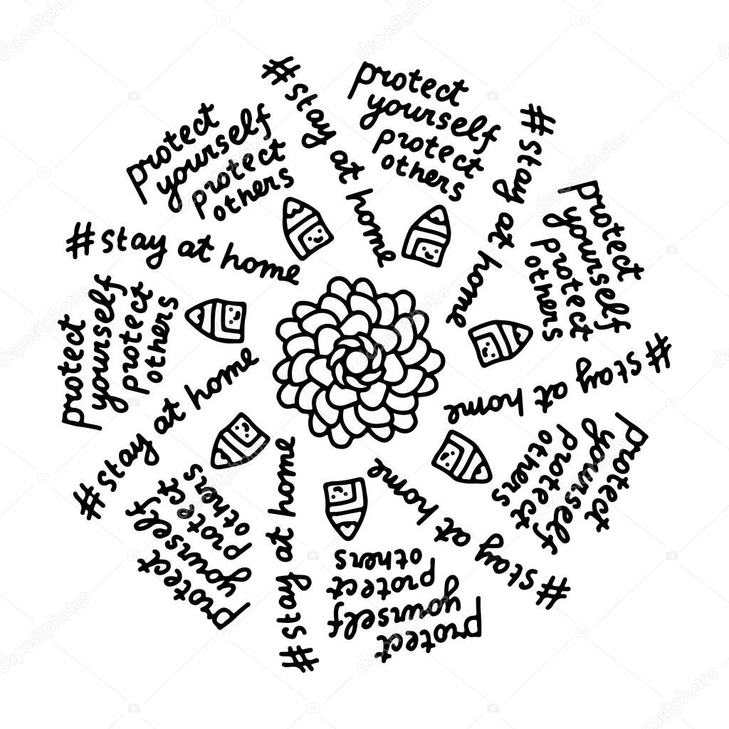 - Защитите себя другие остаться дома рисовал векторные иллюстрации в мультяшном комиксе буквы инфекционной поддержки мандала
