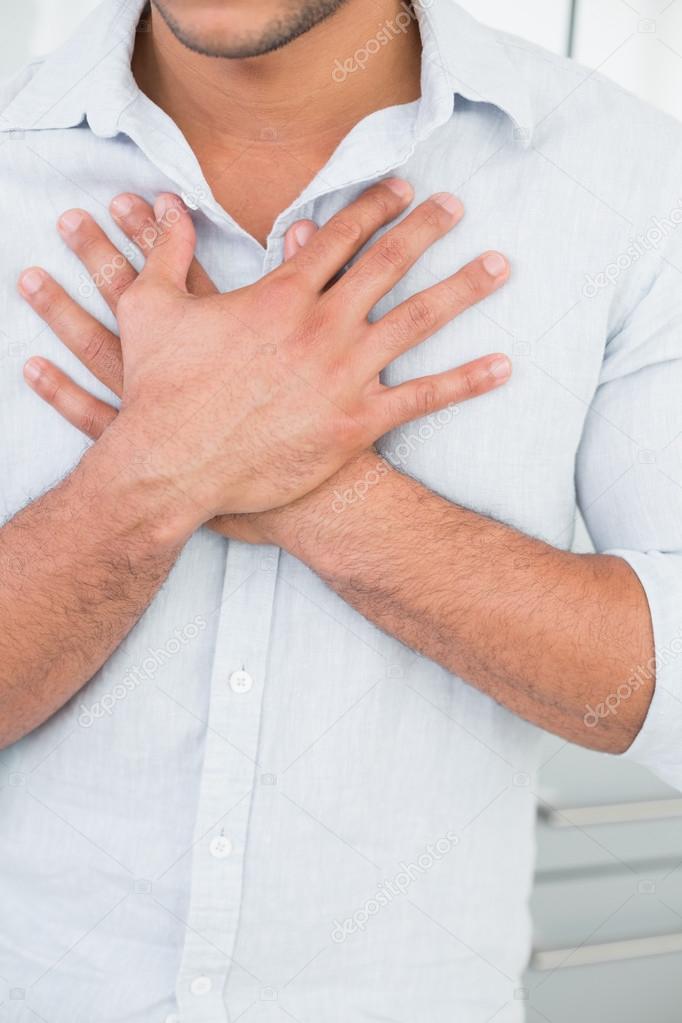 Средняя часть тела человека с болью в груди