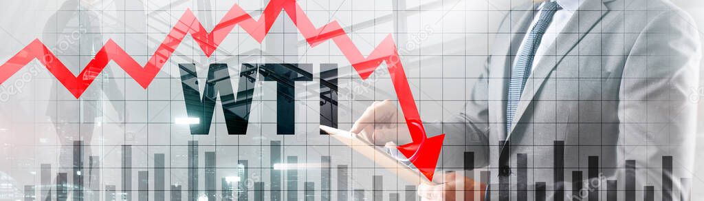 Падение цены на баррель нефти WTI 2020. Красная стрелка вниз