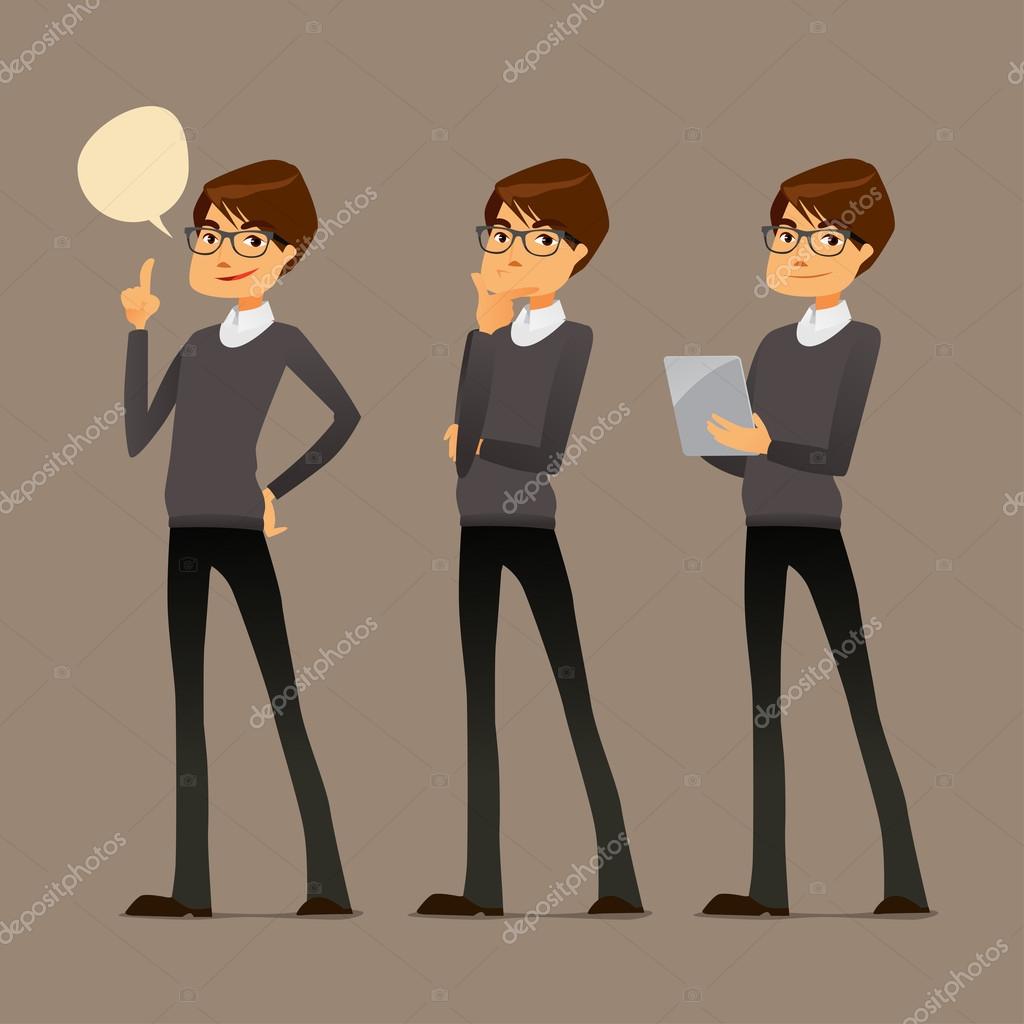 - Симпатичный мультяшный парень в очках, в разных позах