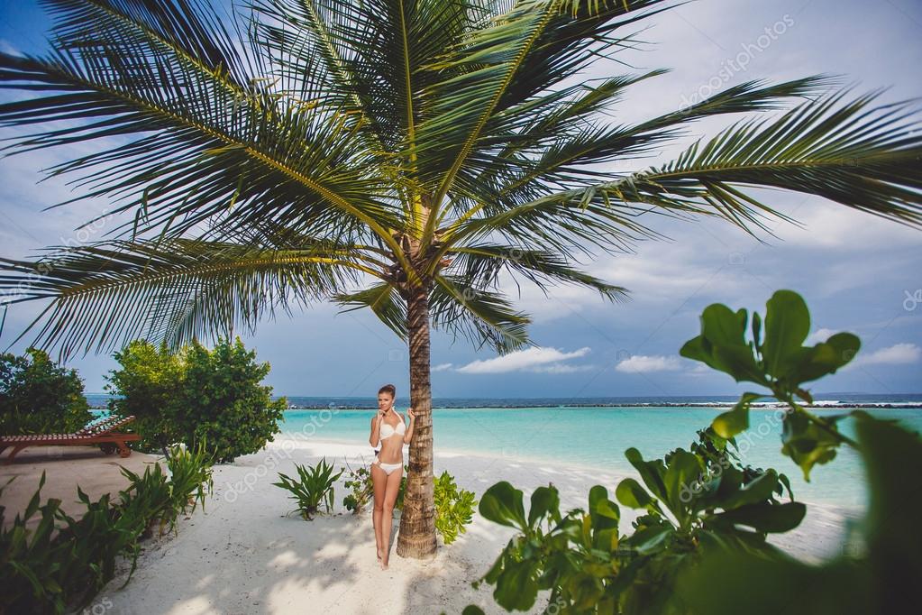 Женщина в бикини на тропическом пляже