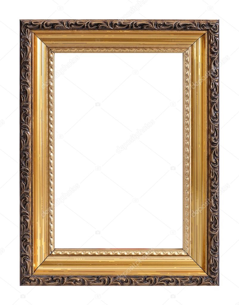 Золотая рамка для картин, зеркал или фотографий на белом фоне